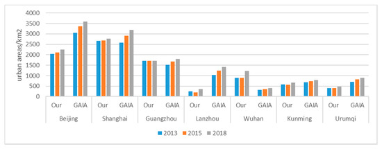 | City | Our Method | GAIA | NUACI-Based | MODIS500 | FCN | Landsat | |||||