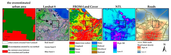 - Zhang, Q.; Wang, P.; Chen, H.; Huang, Q.; Jiang, H.; Zhang, Z.; Zhang, Y.; Luo, X.; Sun, S. A novel method for urban area extraction from VIIRS DNB and MODIS NDVI data: A case study of Chinese cities. Int. J. Remote Sens. 2017, 38, 6094–6109. [Google Scholar] [CrossRef]