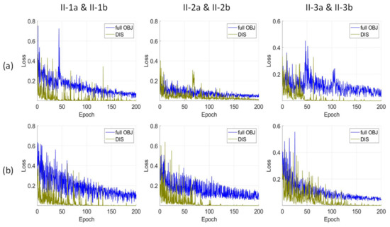 It is noteworthy that the convergence procedure of the full objectives and discrimination losses in Figure 12b are generally more stable than that in Figure 12a. It is confirmed that those translations with the direction, from the images without snow cover to the ones with snow cover, are positive to facilitate the change detection.