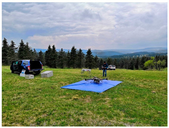 During mission planning, we accounted for UAV weather limitations with a maximum wind speed of 10 m/s and a temperature interval from −10 to +40 °C [36]. We also observed all the national law restrictions, summarized in [37], of which the most important are a maximum flight altitude 300 m aboveground, visual line of site between pilot and UAV, availability of the air space (controlled on web portal of Air Navigation Services of the Czech Republic), and minimum distance from people and buildings.
