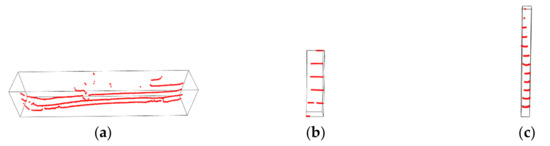 Generally speaking, objects, such as people, vehicles, and buildings, are vertically aligned with the ground. This means that the distance between the points in the same slice after projection is much less than that between different slices. Therefore, we can easily find a distance threshold ∆Rth to abstract all slices in a raw point cloud. All points in a point cloud can be divided into points belonging to a certain slice and a set of single points. In the previous study, we also proposed a highly efficient slice extraction and labeling method. Furthermore, the shape of objects in the real world is not regular so that there may be deviation when we use slices to represent the shape of objects—particularly, at the edges of the object or points of the object is sparse.