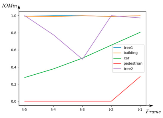In the process of semantic segmentation, we first extract road users by the IOMin-RNN model. This model is based on RNN, and the input feature of this model is the IOMin sequences. This paper tests the effect of different IOMin sequence length on road user detection by using accuracy [37], precision [38], recall [39], and Area Under Curve (AUC) [40], as shown in Table 2. It can be seen that the identification of road users is more accurate with the increase in sequence length. However, when the sequence length is 5 or 6, their recognition effects are similar. Furthermore, it is obvious that when the sequence length is 6, more computing resources are needed. Therefore, the most suitable sequence length is 5.
