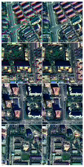 - The feature of building itself, including the shape, size, color, and texture of the roof of building reflected in the image. Although these features may not determine the NoS from the physical side, they may have some statistical significance. For example: buildings with very large or small roof areas are often not high-rise buildings. It should be pointed out that the image used in our experiment is 1 m resolution ortho-rectifying satellite image. We cannot see any side information of buildings even for the high-rise building from our image, such as windows or balconies of buildings (as can be seen in Figure 7). Therefore, our model does not use the side information of buildings. However, we believe that the side information of buildings in the appropriate image should play a more important role in the task of NoS estimation, but this point might need to be furthermore tested in the future related research.