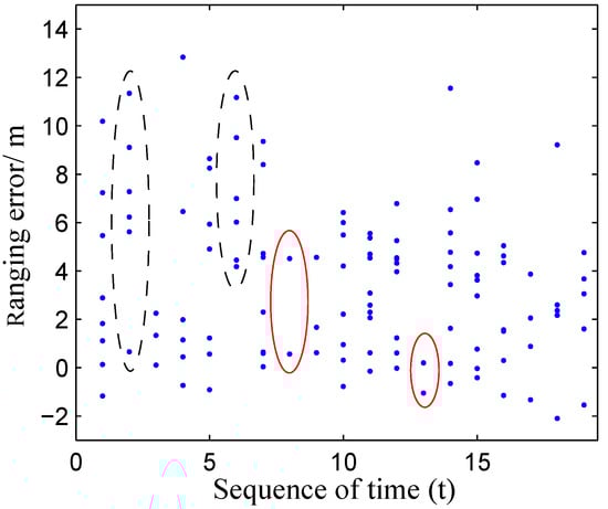Figure 1 depicts the sparsity problem, indicating that it only occurs in a few ranging instances, e.g., the ranging neighboring the time-sequence with scarce measurements can still obtain sufficient measurements; moreover, the NLOS errors appear randomly rather than presenting continuously. Therefore, the sparsity problem is a temporary problem.