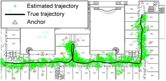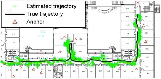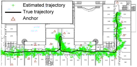 Indoor wireless positioning has attracted much attention in recent years, which is the key important issue arising in robotics, advanced signal processing, social networking, or mobile monitoring of indoor environments, just to mention a few. Most positioning applications provide time-series measurements and demand for continuous estimation of the target’s position []. Particularly, when considering Time-of-Flight (TOF) measurements as ranging measurements, the uncertainty of ranging measurements is coherent with dynamic environments and sensor limitations []. Due to that, the indoor positioning problem is to understand the dynamic of which limited and noisy observations are available. In the main, a considerable amount of research has been put into the purpose of sequential estimations of indoor position, also known as indoor sequential positioning or position tracking [,,].