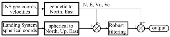 Kolosov, K.; Miller, A.; Miller, B. Robust Data Fusion of UAV Navigation Measurements with Application to the Landing System. Remote Sens. 2020, 12, 3849. https://doi.org/10.3390/rs12233849