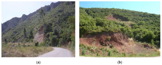 Characteristic landslides in the study area (a) translational landslide, (b) rotational landslide—weathering mantle.