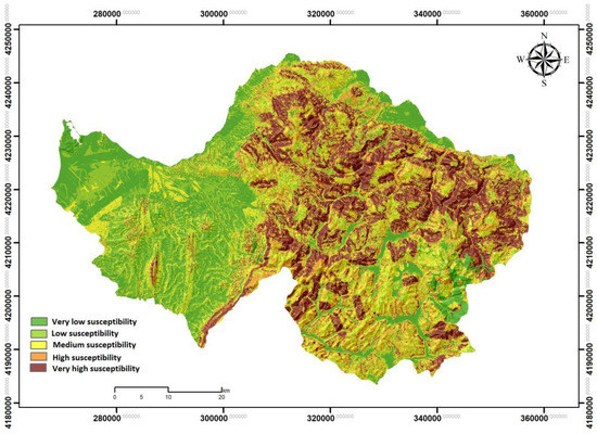 Landslides are natural disasters, the evolution of which has significant adverse consequences on the natural and build environment and in some cases, unfortunate human losses [1,2,3]. An increase in landslides has been reported worldwide, which is mainly associated with the impact of human activities and also natural processes. Specifically, it is well documented that favorable geo-environmental settings, climate change (the manifestation of extreme rainfall), human activities (the construction of new settlements and infrastructures in landslide-prone areas), and also changes in land-use patterns increase the possibility of landslides, which is a trend that likely will continue in the future [3,4,5]. As a response to increasing stress, the international scientific community has focused its efforts on designing effective strategies for predicting and mitigating the negative effects of landslides [2]. Numerous studies involving the estimation of the probability of the occurrence of a landslide considering, either their spatial component or both their spatial and temporal component, could be found. According to [6], the estimation of the landslide-prone areas, taking into account only their spatial component referred to as landslide susceptibility, is by far the most investigated topic and one of the most important components in a landslide risk study [7]. The prediction of landslides has been described mainly as a classification problem. The classification process is performed based on the complex and non-linear relation that exists between the spatial distribution of landslides and the landslide-related parameters [8,9].