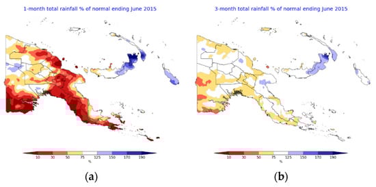 Droughts frequently occur in Asia-Pacific countries affecting many people and impacting on the well-being and economy of populations. Over the past 30 years, droughts have affected millions of people in the western Pacific with the most severe drought events having occurred during El Niño years [1]. Similarly, droughts related to the El Niño–Southern Oscillation (ENSO) are a recurring climate phenomenon in the Pacific Island Countries [2]. El Niño refers to the warm phase of ENSO where there is a warming of sea surface temperatures in the central and eastern equatorial Pacific Ocean. This is typically associated with higher pressure and lower rainfall over mainland Papua New Guinea (PNG) [3]. Impacts of droughts on Pacific islands can be very extreme. For example, in 2011, the Pacific country of Tuvalu experienced severe ENSO-induced drought which resulted in a major water availability crisis [4]. In 2015–2016, PNG was affected by severe drought due to a strong El Niño. PNG is a country in the South Pacific with a population of almost 7 million people, of which 85% rely on subsistence agriculture [5]. The Government of PNG estimated that during the 2015–2016 drought, approximately 480,000 people faced critical food shortages due to subsistence crops failing and extreme water shortages [6].