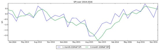 Using the 3-month values of the index, it was demonstrated that the SPI was able to indicate that rainfall was anomalously low across the 2015–2016 drought period (Figure 10). The extreme values and the prolonged duration demonstrated the severity of the event.