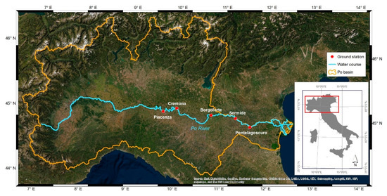 - Schneider, R.; Tarpanelli, A.; Nielsen, C.; Madsen, H.; Bauer-Gottwein, P. Evaluation of multi-mode Cryosat-2 altimetry data over the Po River against in situ data and a hydrodynamic model. Adv. Water Resour. 2018, 112, 17–26. [Google Scholar] [CrossRef]