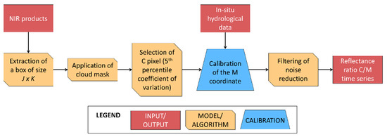 - system vicarious calibration and alternative atmospheric correction: these are the final pre-processing steps performing an indirect calibration with in -situ high-precision radiometry and improving the atmospheric correction on turbid and highly absorbent waters through a neural network. The Case 2 Regional Coast Color (C2RCC) processor is used, based on a neural network method with multi-sensor per pixel artificial, built on the AC Case 2 Regional and Coast Colour algorithms [37].
