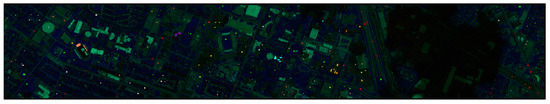 From the IEEE GRSS Data Fusion package [25], we obtained the hyperspectral image of the University of Houston area, the ground truth land cover information for the training and test pixels and the LiDAR data of the same area. The instruments used to collect the dataset are a hyperspectral sensor and a LiDAR sensor. The hyperspectral data contain 144 bands that range in wavelength from 380–1050 nm, with a spatial resolution of 2.5 m. Each band has a spectral width of 4.65 nm. The LiDAR data contain elevation information with a resolution of 2.5 m. The LiDAR sensor has a laser wavelength in three channels of 1550 nm, 1064 nm, and 532 nm with an operating altitude from 300 to 2500 m. The vertical accuracy is between 5–15 cm and the horizontal accuracy is a factor of the altitude at 1/5500 × altitude.