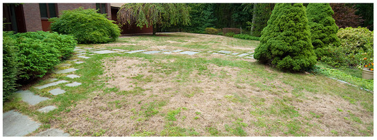 Some of the land cover classes in Table 1 may need some further explanations. Stressed grass differs from healthy grass since it is not watered enough and has brown spots whereas healthy grass is all green with no brown spots. An example picture showing stressed grass can be seen in Figure 3. The differences between synthetic and normal grasses can be clearly seen in Figure 4. Assuming that some of the building structures in the U. of Houston campus did not change, we looked at the same geographical site from Google Earth and we identified a number of ground truth pixels for “Parking lot-1” and “Parking-lot2” type land covers. The differences between the two parking lot types can be examined in the following screenshot in Figure 5. The materials that form these two types of parking lots seem to be quite different. Moreover, assuming that some of the building structures did not change, we looked at the same geographical site from Google Earth and we identified a number of ground truth pixels for “Residential” and “Commercial” type land covers in the IEEE dataset. A screenshot showing some of these locations using these ground truth pixels for these two land covers can be both seen in the Google Earth image and the hyperspectral dataset in Figure 6 to better visualize how these two land cover types differ. The other remaining land cover types, such as water, trees, soil, tennis courts, roads, etc., are self-explanatory.