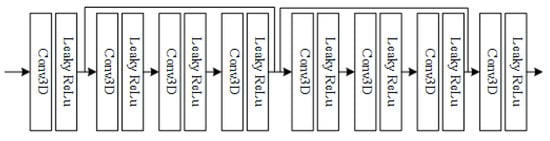 Here, the 3D CNNs is used to extract the features across temporal residuals and spatial dimensions. Then, datasets and are used to predict the restored HSHT dataset . Because some details of the extracted features are aborted when passing pooling layers [20], we choose not to use pooling layers and simply use the simple structure of fully convolutional layers.