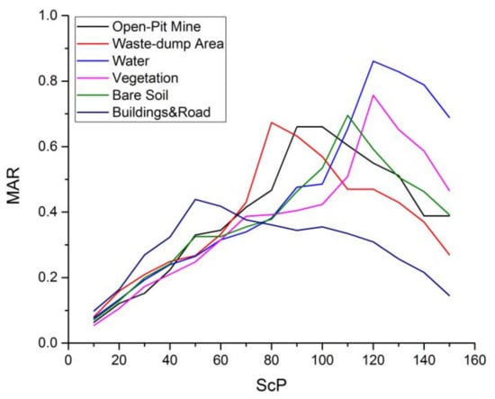 The optimal ScP parameter of each LUC was determined by using the MAR method. The map of MAR values vary with the ScP was shown in Figure 4.