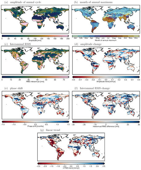 4. Kusche, J.; Eicker, A.; Forootan, E.; Springer, A.; Longuevergne, L. Mapping probabilities of extreme continental water storage changes from space gravimetry. Geophys. Res. Lett. 2016, 43, 8026–8034. [Google Scholar] [CrossRef]