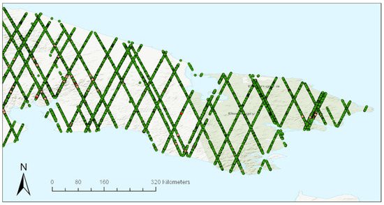 The ICESat-2 satellite, which was launched in 2018 [46], has much better absolute accuracy [47], carrying the more advanced ATLAS sensor. However, due to its limited coverage at that time (our study started not long after the satellite was launched) we decided against using it. We were able to use the ICESat-1 sensor to some extent, but due to problems encountered with bad laser collects and because the sensors estimates heights of the Earth’s surface (i.e., DSM) and not the Earth’s terrain (i.e., DTM or DEM), we used it on a more limited basis than originally anticipated. Additionally, and while the effect is relatively small, both sensors onboard the ICESat-1 and ICESat-2 satellites suffer from unreliable height estimates with increasing slope and vegetation cover [47,48,49], which this study focused on. Lastly, these systems had limited ability to find surface imperfections and artifacts since it only samples the Earth with laser shots, rather than modeling the whole surface.