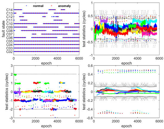 Secondly, we tested the IGM in the case of ionospheric anomaly. It should be noted that the instantaneous IGM method from Khanafseh and Pullen (2012) was chosen to reveal the sensitivity improvement of the proposed IGM method, while the single-frequency IGM method was used to compare the improvement of the proposed IGM method in the required averaging length. Since we verified that the ionosphere gradient was absent for the selected dataset, we simulated a virtual ionospheric gradient from 60 mm/km to 300 mm/km to verify the MDE of the three IGM methods to the ionospheric gradients. The virtual ionospheric gradient was injected into the reference satellite to affect all the test statistics. Moreover, we selected the geostationary earth orbit satellite C01 as the reference satellite to ensure the consistency of experimental conditions. The state of simulated virtual ionosphere gradient injection and the detection process of three IGM methods are shown in Figure 9.