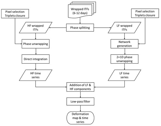 Workflow of the processing approach. ITFs, interferograms; HF, high frequency; LF, low frequency.