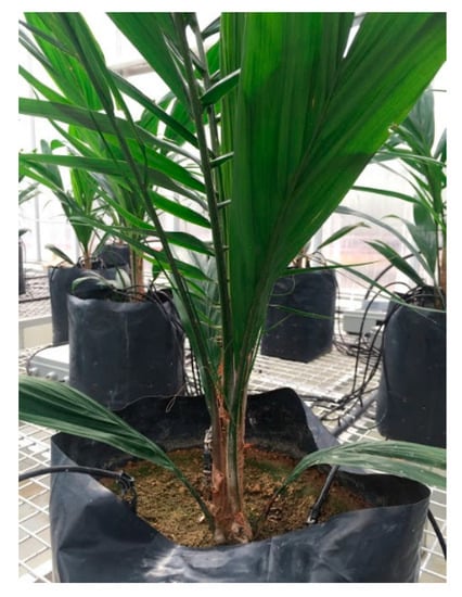 A total of 28 oil palm seedlings (commercial standard crosses of Dura × Pisifera, D × P) were obtained from Sime Darby Plantation, Banting, Malaysia, at the age of four months old. The seedlings were permitted to acclimatize under greenhouse conditions for one month before transplanting.