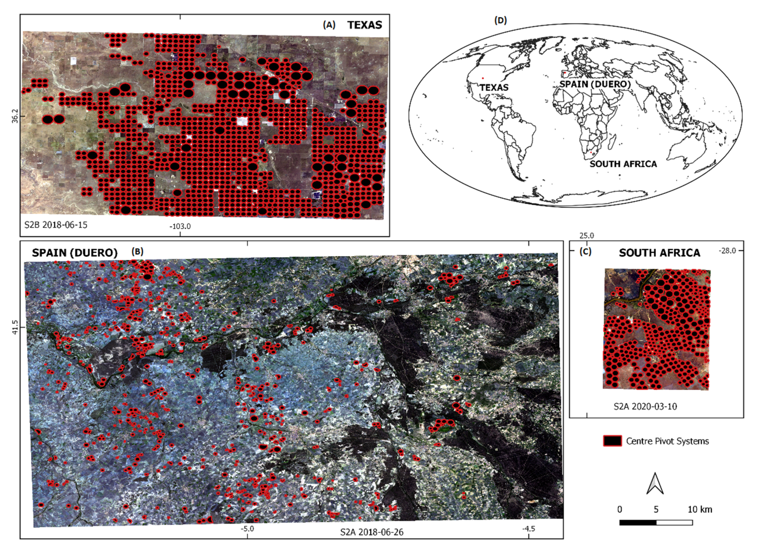 - Saraiva, M.; Protas, É.; Salgado, M.; Souza, C. Automatic mapping of center pivot irrigation systems from satellite images using deep learning. Remote Sens. 2020, 12, 558. [Google Scholar] [CrossRef]