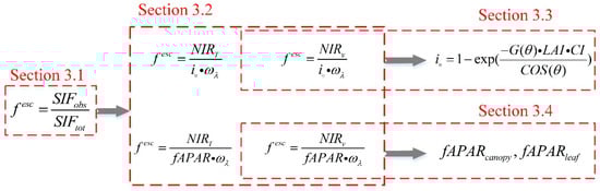 The original estimation method (Equation (1)) for SIF escape probability at far-red band based on SIT was developed by [22]. It combines top of canopy reflectance NIRv, canopy interceptance io, and leaf single scattering albedo ωλ as