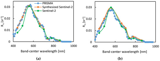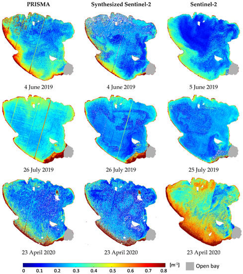 - Giardino, C.; Bresciani, M.; Braga, F.; Fabbretto, A.; Ghirardi, N.; Pepe, M.; Gianinetto, M.; Colombo, R.; Cogliati, S.; Ghebrehiwot, S.; et al. First Evaluation of PRISMA Level 1 Data for Water Applications. Sensors 2020, 20, 4553. [Google Scholar] [CrossRef] [PubMed]