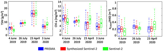 4.2. Cross-Sensor Comparison of Water Quality Products