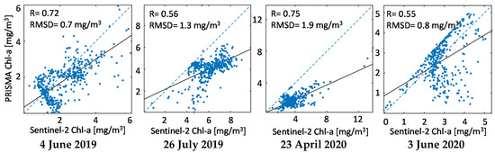 Niroumand-Jadidi, M.; Bovolo, F.; Bruzzone, L. Water Quality Retrieval from PRISMA Hyperspectral Images: First Experience in a Turbid Lake and Comparison with Sentinel-2. Remote Sens. 2020, 12, 3984. https://doi.org/10.3390/rs12233984