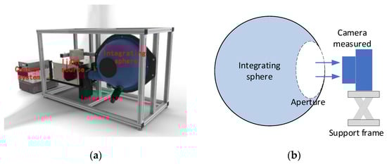 Integrating sphere system: (a) structure of integrating sphere system; (b) observation scheme of calibration.