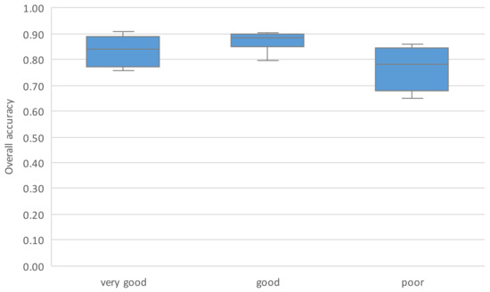 Overall accuracy of the automatic classification compared to the manual reclassification for 17 randomly selected quadrants. Maps were assigned with very good quality, good quality, and poor quality. Detailed results are in Table S1.