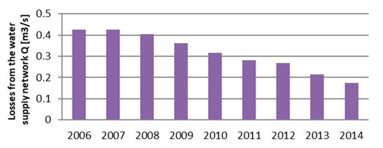 The study [38], took into account the drastic reduction (Figure 2) of the water supply losses due to the improvement of the water distribution network in the study area. During 2014–2019, a decrease of the annual precipitations has been registered [39]. This also contributed to the decrease of the hydraulic head in both shallow (unconfined) and middle (confined) layers. The same study [38], put into evidence the area permanent dewatering systems installed to decrease the hydraulic head in both aquifer strata respectively the unconfined aquifer layer and the confined one. The dewatering systems are reducing the groundwater seepage into the deep foundations of the buildings.