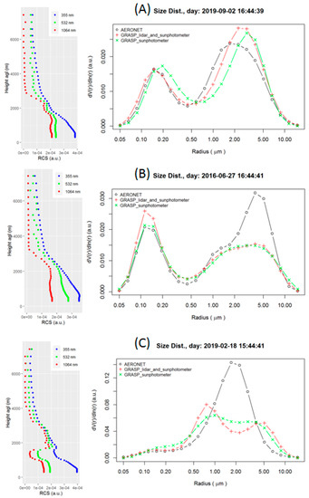 - Román, R.; Benavent-Oltra, J.A.; Casquero-Vera, J.A.; Lopatin, A.; Cazorla, A.; Lyamani, H.; Denjean, C.; Fuertes, D.; Pérez-Ramírez, D.; Torres, B.; et al. Retrieval of aerosol profiles combining sunphotometer and ceilometer measurements in GRASP code. Atmos. Res. 2018, 204. [Google Scholar] [CrossRef]