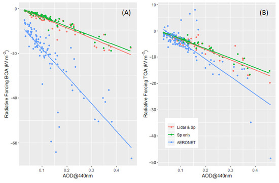 | TOA | Lidar and sunphotometer | 0.556 | −38.6 | 0.872 |