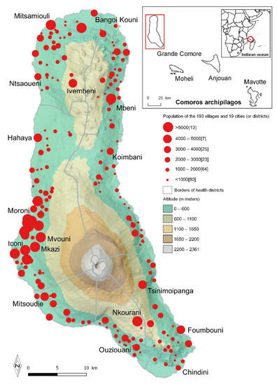 - Ouledi, A. Paludisme et Environnement aux Comores [Malaria and Environment in Comoros]. Ph.D. Thesis, Université Paris VI—Pierre et Marie Curie, Paris, France, 2003. (In French). [Google Scholar]