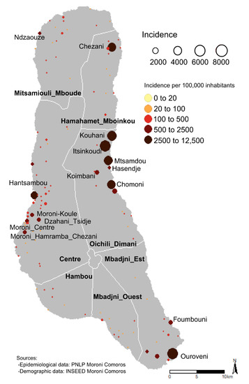 Attoumane, A.; Silai, R.; Bacar, A.; Cardinale, E.; Pennober, G.; Herbreteau, V. Changing Patterns of Malaria in Grande Comore after a Drastic Decline: Importance of Fine-Scale Spatial Analysis to Inform Future Control Actions. Remote Sens. 2020, 12, 4082. https://doi.org/10.3390/rs12244082