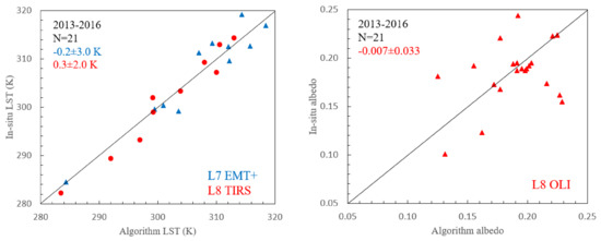 2 of 0.92 for ETM+ and TIRS estimates, respectively. These values are in concordance with other validations performed in [