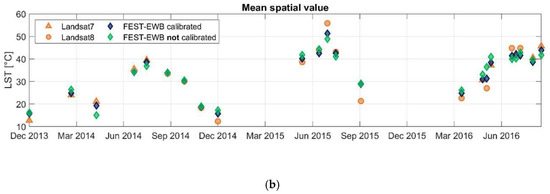 31] used remotely sensed LST for calibrating the parametres of the FEST-EWB energy–water balance model showing its potentiality with respect to the traditional calibration with ground river discharge data.