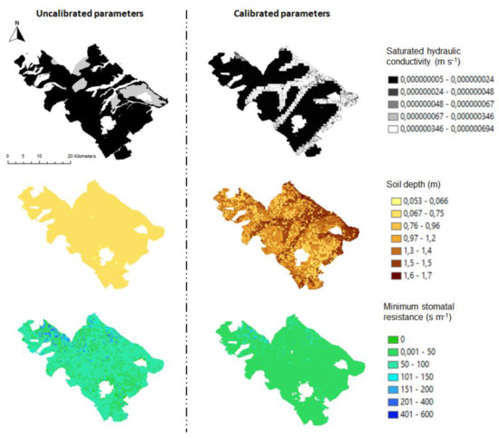 30] highlighted that the FEST-EWB parametres that have a relevant impact on the water fluxes and thus subjected to calibration are: soil hydraulic conductivity, soil depth, minimum stomatal resistance, soil evaporation resistance, aerodynamic resistance, Brooks–Corey index.