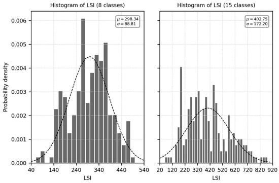 This research also has several limitations. First, we assumed a uniform spatial distribution for positional errors. Future work should consider the different forms of geometric distortions and evaluate the worst effect []. Second, the twelve study sites using the level I classification scheme were created by collapsing the classes in the stratified random level II study sites. Therefore, while the level II sites were selected to be representative of the landscape characteristics, there was no guarantee that the sites would remain so when collapsed to leve1 I. However, a preliminary analysis shows that the LSI of twelve study sites at level I (Table 3) still covers the dynamic range according to the histogram of LSI (Figure 8). Third, this research only took into account the spatial scales ranging from 150 to 900 m of the classification map, which is limited by the spatial resolution of the NLCD 2016 as reference data. However, if considering the relative size of pixels between the simulated classification map and the reference data, the conclusions could be extended to other spatial scales. Unfortunately, as the spatial resolution increases, it is more challenging to geo-register a pixel to sub-pixel level due to a lack of a high precision digital elevation model [,]. Therefore, this research speculates that using a single-pixel as an assessment unit is also not appropriate for thematic accuracy assessment at higher spatial scales. Finally, this research only included twelve study sites within the United States, and all accuracy measures were at the map level. However, this research took 1488 h of processing time using a laptop workstation with an E-2176M 6 core processor and 32 GB of memory. Future work could test the conclusion at a categorical level.