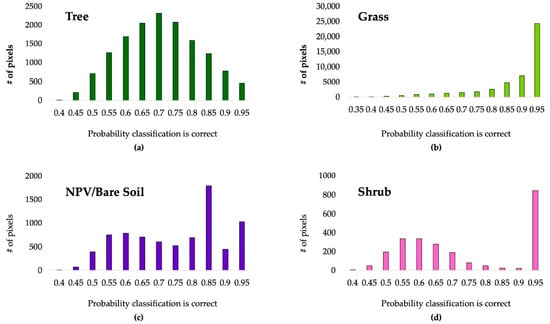 Figure 3b). This landcover map was also used to mask all impervious surfaces and water, leaving four vegetated landcover classes: grass, shrub, tree, and NPV/bare soil.