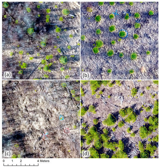32] employed Mask R-CNN to delineate ITC in a tropical forest with RGB, UAV-acquired imagery. They reported precision, recall, and F1 scores of 0.91, 0.81, and 0.86, respectively.