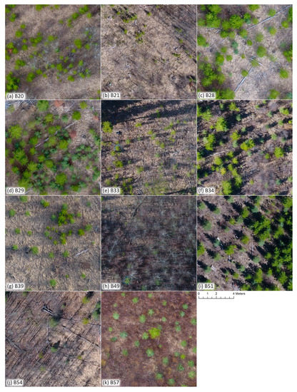 Our proposed methods to automatically delineate and extract height information for individual conifers in true colour imagery have the potential to improve the speed and scale at which forest regeneration monitoring can occur. However, techniques to classify tree species and delineate individual deciduous crowns from true colour imagery are still required if the criteria of field-based regeneration assessments are to be met by remote sensing approaches. As such, our research serves as a stepping-stone towards the remote automation of regeneration monitoring and future studies should focus on the deciduous components of boreal regeneration as well as the classification of individual tree species.