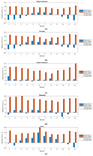 The ISR RMSE in Oceania ranges from 17.41 W/m2 to 34.63 W/m2 at the different sites while the bias ranges from −7.44 W/m2 to 11.02 W/m2. The overall RMSE and bias are 27.41 W/m2 and 0.52 W/m2, respectively.