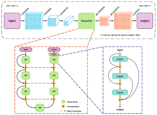 - In the generators G (dehazing model) and F (add-haze model), DenseNet blocks, which can recover the high-frequency information from remote-sensing images, are introduced to replace ResNet.