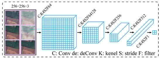 - Enomoto, K.; Sakurada, K.; Wang, W.; Fukui, H.; Matsuoka, M.; Nakamura, R.; Kawaguchi, N. Filmy cloud removal on satellite imagery with multispectral conditional generative adversarial nets. In Proceedings of the IEEE Conference on Computer Vision and Pattern Recognition Workshops; IEEE: New York, NY, USA, 2017; pp. 48–56. [Google Scholar]