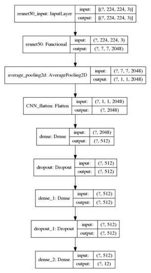 Schematic presentation of the top layers and modifications as applied to the ResNet–50 CNN. Since the actual input for training depends on the batch size, (?) represents this batch size. In the current manuscript the batch size used for training, validation and testing was 32.
