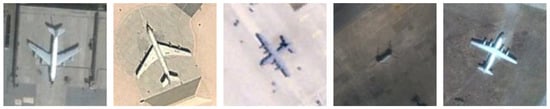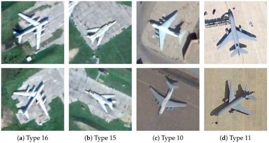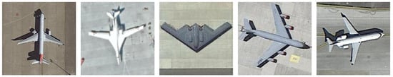 Multitype Aircraft Remote Sensing Images (MTARSI) [28] is a large-scale fine-grained aircraft type classification dataset. It is carefully annotated under the guidance of 7 experts in remote sensing interpretation. Thus, this dataset possesses a higher authority. In MTARSI, there are 9385 remote sensing images with different width and height extracted from Google Earth. The spatial resolution of these images changes from 1 m to 0.3 m. Totally, this dataset contains 20 types of aircraft and the quantity of images in each type of aircraft ranges from 230 to 846. Moreover, MTARSI has abundant multi temporal information. Images in MTARSI are selected at different times. It enriches the intraclass variation, bringing more difficulties to aircraft type recognition task. Besides, for each aircraft type, the models are quite different even though their appearances are similar. This makes one recognition algorithm difficult to distinguish different types, for the increasing of interclass similarity. Some aircraft examples of MTARSI are listed in Figure 4. As for the split of training set and test set, our approach is consistent with [28], that is four-fifths of the whole samples are selected for training and the rest are used for evaluation.