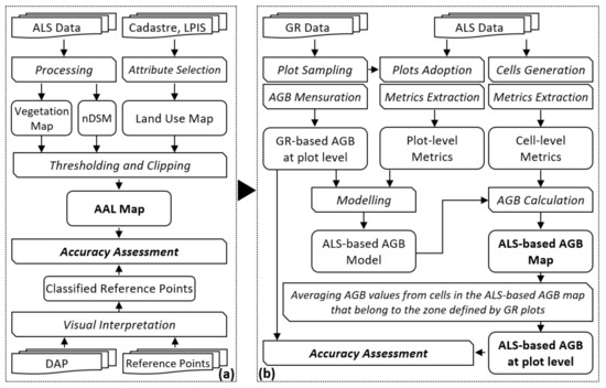 The workflow for mapping AGB on AAL based on a combination of field and ALS data is shown in Figure 2 and described in detail in the following sections.
